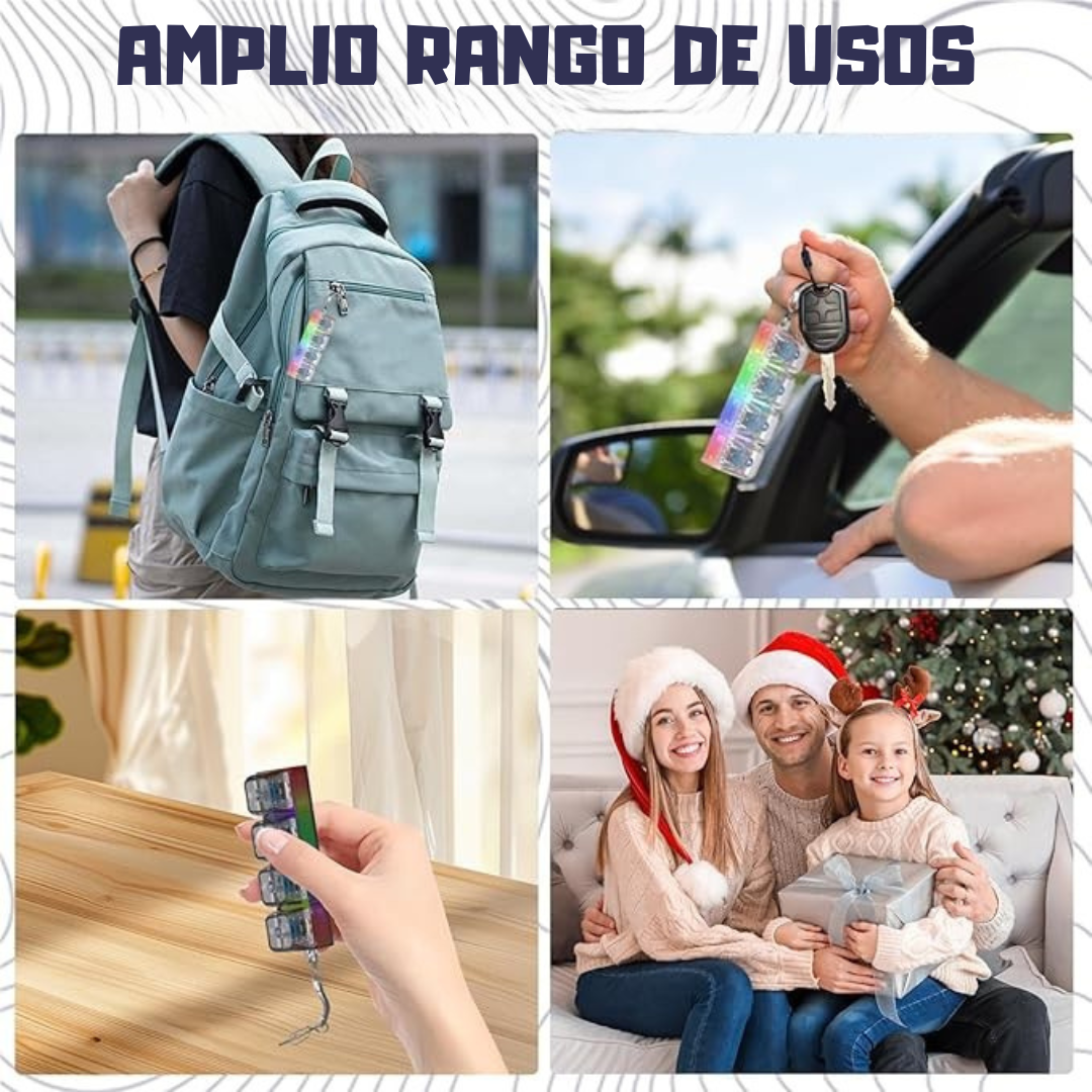 Lo llevas en tu bolsillo, mochila o llavero Listo para usar en segundos, estés donde estés Discreto, ligero y práctico